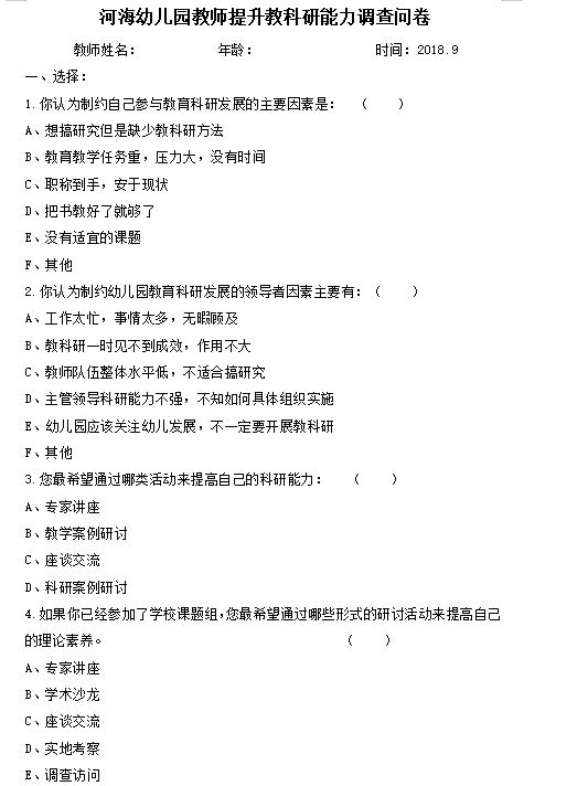 如图:《教师教科研调查问卷》