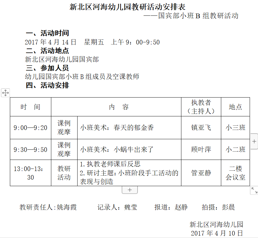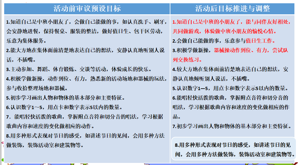通过调研排摸,我们设置了分期教研计划,围绕目标定向开展园本教研活动。