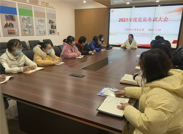 为继续深入学习贯彻党的十九届六中全会精神,提升党员教师队伍整体的素质,2022年1月27日下午,河海幼儿园党支部开展了2021-2022年度党员冬训大会,会议共有四个议程,全体党员及入党积极分子参与了活动。