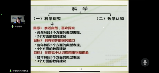 确定了本学期园科学工作室将引领成员教师深入学习《指南》精神,加强工作小组的范式管理,以有效教学为抓手,以教师的发展为根本,坚持在幼儿科学教育研究中落实反思性教学策略,强化教研活动过程,提高教研活动实效。今天的启动仪式——暨第一次线上活动,便由组长刘禹锡有针对性地进行了科学领域核心经验第一篇章的解读,在线与会教师皆有所得。