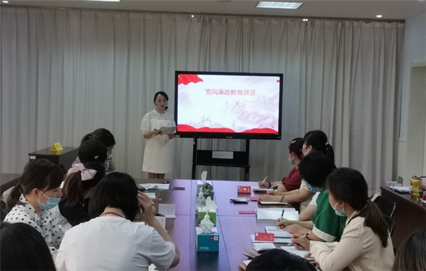 会议第三项议程为党风廉政教育工作部署,端午节即将到来,万洁书记向全体党员发出倡议与提醒:全体党员干部要带头崇廉拒腐,自觉在廉洁自律上追求高标准,在严守党纪上远离违纪红线,坚决杜绝“节日腐败”,努力践行“两学一做”,增强“四个意识”,争做新时代的“四有”好教师。