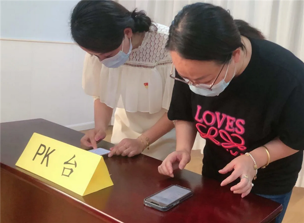 最后,为深入贯彻落实习近平总书记用好“学习强国”平台指示精神,营造深入学习党史知识的氛围,达到以赛促学,以学促用的目的,全体参会人员以抽签的形式分成两组进行“学习强国”答题PK赛,大家积极参与、认真答题,经过激烈地角逐,强国一号队获胜,万洁、何洪秀同志为获奖队选手颁奖。