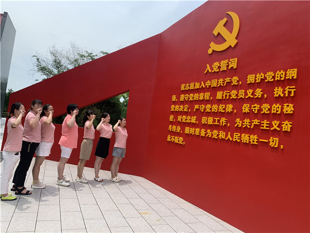 到达现场后,在讲解员的带领下,全体党员同志先后参观了新四军江南指挥部司令部旧址、司令部通讯班等地,通过观看馆内文献资料、历史图片、珍贵文物、革命影像等历史资料,结合讲解员生动讲解,追忆那段硝烟弥漫的战争岁月。在展馆广场中央,党支部书记万洁同志带领全体党员重温入党誓词,大家高举右手、握紧拳头,以铿锵有力的声音向党旗宣誓。铮铮誓言是承诺更是担当,进一步增强党员意识,明确党员身份,牢记对党的承诺,不忘党员的责任和使命,努力争做优秀共产党员。