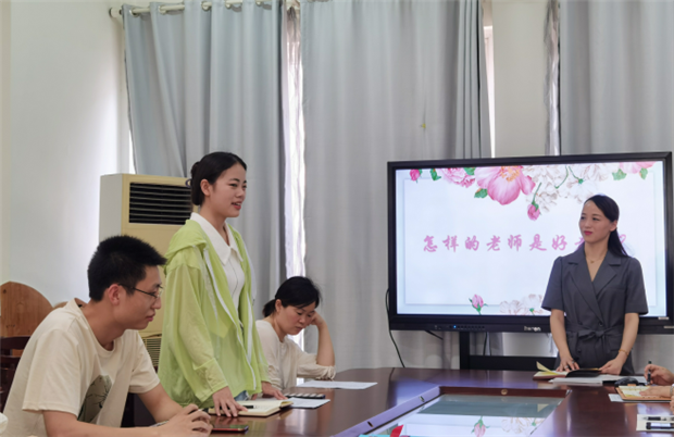 在主持人刘禹锡副园长代表全体教职工欢迎新教师们的加入后,每位新老师用自己独特的方式进行了自我介绍:名字、特长及入园后的愿景、期许等等,让在座的老师印象深刻。