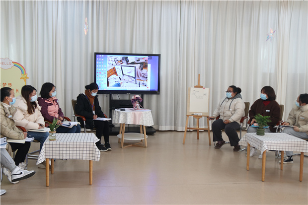观摩结束后,副园长王倩云作为主持人组织部分教师以“结合区域游戏现场,解析环境如何支持幼儿自主学习”为话题进行交流研讨。