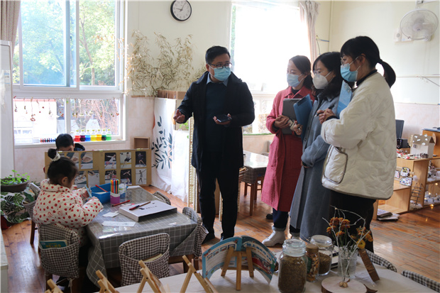 在万洁园长和老师们的陪同下,徐主任走进小一班、中三班、大一班,深入观察区域游戏开展,对区域游戏、环境创设进行调研指导。在对孩子们的观察以及和孩子们的互动中,倾听他们在游戏过程中的真实想法和感受。