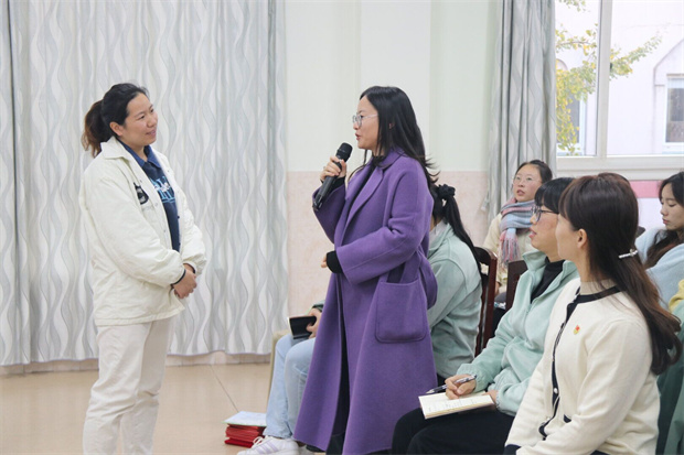 随后,戴丽娟老师以互动对话的方式展开了好书推荐活动,带领全体教工阅读《做有温度的幼儿教育》,引起老师们的共鸣,使他们在文章中找到自己工作的影子,进而产生自己的思考和反思,提出自己的想法。