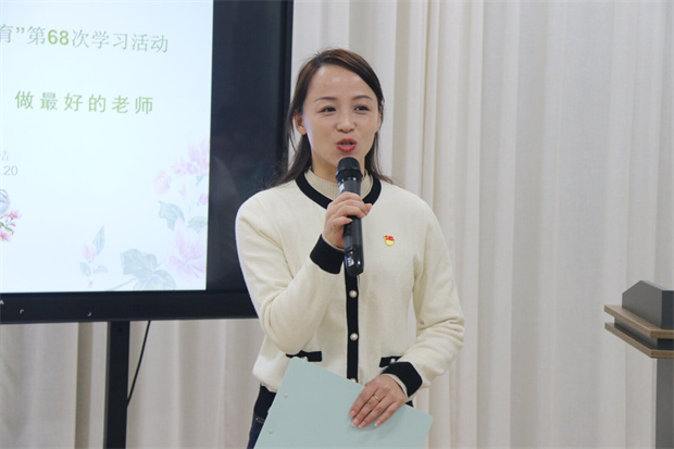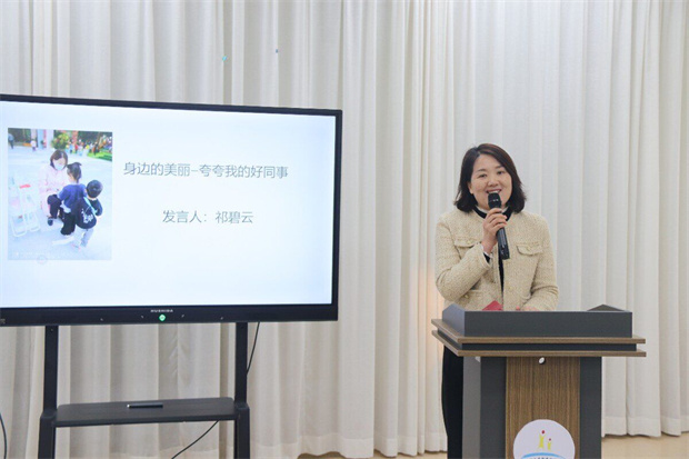 2023年11月20日下午,河海幼儿园召开了以“做有温度的教育 做最好的老师”为主题的第六十八次静心善育学习活动,活动共三项议程:夸夸身边的人——每月之星——《做有温度的幼儿教育》好书推荐。活动由中班教研组长戴丽娟主持。