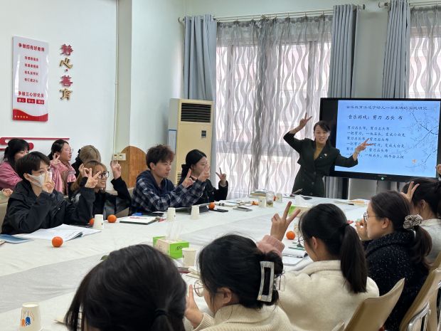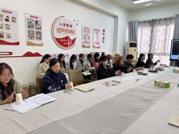 活动正式开始前,马佳钰老师带着课题组的老师们进行了一个破冰游戏——拍拿放。老师们随乐做动作的样子青春洋溢、活力四射,也在一片热忱中开展了此次活动。