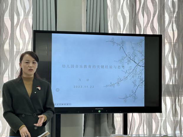 随后,园长万洁对全体课题组成员进行专业引领与提升,万园长还围绕“幼儿园音乐教育的关键经验与思考”谈到,在活动中我们要看见教师和幼儿的活动状态是非常投入、快乐且享受的,其次我们要进一步明晰音乐游戏和学习活动的边界,音乐游戏中创造性的表现如何体现,以及教师专业思维、专业素养的提升,最后,我们还要进一步明晰出发点,考虑音乐核心素养的支持策略、游戏活动中师幼互动支持策略、教学策略。
