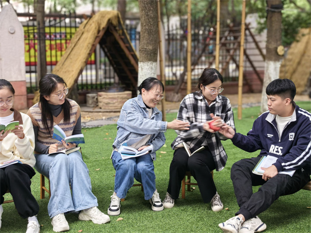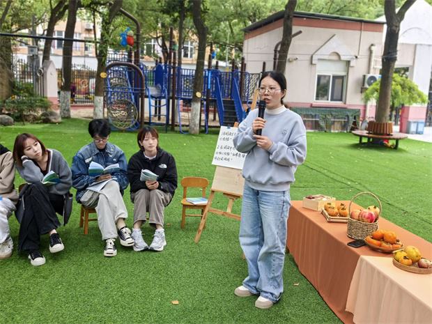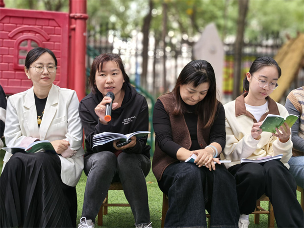 2024年10月31日中午,秋风轻拂,河海幼儿园静谧的户外大草坪上,阅读培育室第二次活动在此开展,这是一场关于阅读与教育的诗意聚会。活动由培育室负责人陈纯霞老师主持。