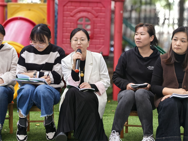 副园长何洪秀对本次活动进行了引领与提升,她强调发展幼儿语言的关键是创设一个能使他们想说、敢说、喜欢说、有机会说并能得到积极应答的环境,作为老师,我们要用心去发现、去创造,让阅读成为幼儿生活中不可或缺的一部分,也让阅读区成为幼儿更为喜爱的游戏场。