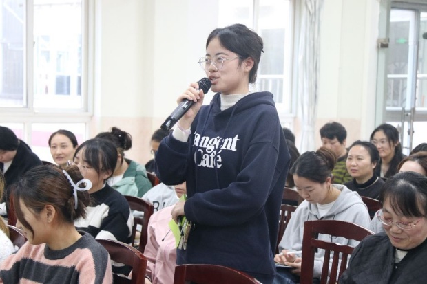 首先黄婷玉老师和邵素萍老师,围绕弘扬教育家精神,谈谈自己的故事。黄婷玉老师认为教育精神是一种深沉的热爱,一种无限的探索,更是一种无私的奉献;邵素萍老师和孩子相处的每一天都是一场关于成长的奇妙旅行每一个细微的回应,都能在他们幼小的心灵里,种下爱与希望的种子,当然,在这趟旅行中,也收获了无数的惊喜与感动。