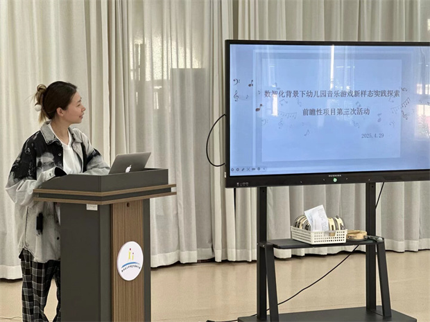 2025年4月29日上午,河海幼儿园教务主任钱晨引领“数智化背景下幼儿园音乐游戏新样态实践探索”项目组,开展了第3次主题活动,通过理论研讨、课例展示与专题讨论三阶推进,呈现数字化与幼教深度融合的创新实践。