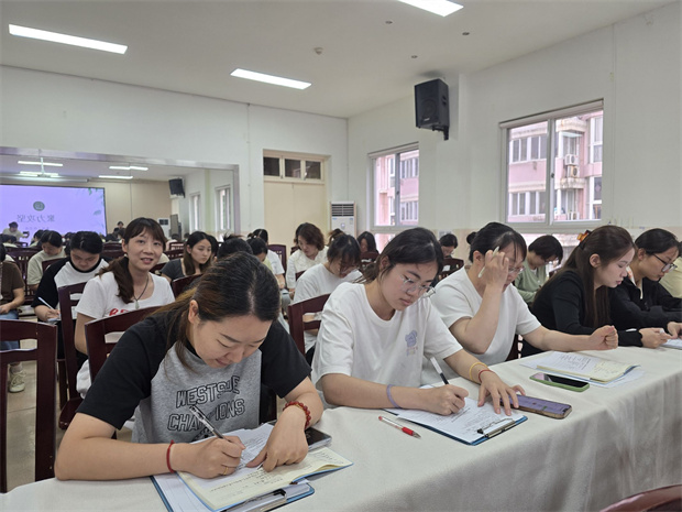 夏木葳蕤,万物并秀。当六月的藤蔓悄然攀上河海幼儿园的窗棂,全体教职工齐聚一堂,开启了第98次静心善育主题教育,活动由中班教研组长徐颖浩主持。