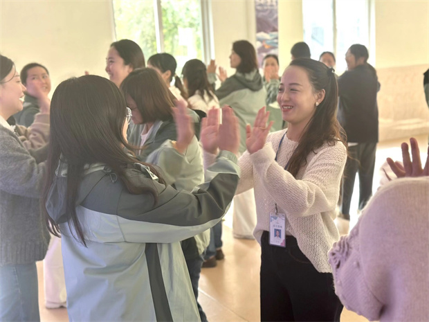 午后阳光正好,311多功能厅内响起轻快旋律。在音乐游戏的带动下,全体教工携手互动,笑声与节奏交织,瞬间点燃了现场氛围。短短五分钟的暖场,也为这场以“沟通”为主题的学习奠定了温暖基调。