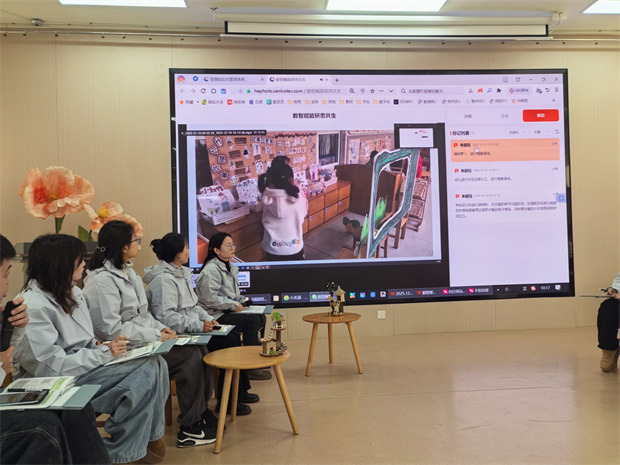 三井街道河海幼儿园副园长何洪秀牵头组织并主持了以“数智聚力,研思共生”为主题的园本教研沙龙活动:本次教研精准聚焦“阅读区优化策略落地成效”,以中二班为实践样本,借助幼儿游戏视频直观验证前期分层设计、互动化改造对幼儿综合素养提升的积极作用。活动中,教研团队还直面“热闹表象下内向幼儿参与度不足”的新问题,通过分组研讨、情景演绎等方式,生成针对性支持策略。全程以数智化工具为核心抓手:教研中依托智跟拍云端平台,对中二班游戏片段开展微格分析,组织全体参与人员共同标注研讨,实现全员深度卷入;并以此构建起“策略-实践-检验-优化”的教研闭环,既深化了教研实效,更以数智化赋能教师专业成长,推动教研管理迈向精准化、科学化。