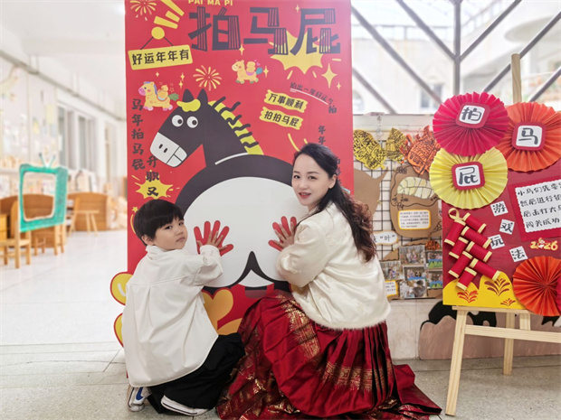 幼儿园里年味与童趣交织,孩子们带着满满的期待,开启了欢乐的开学第一站。“老师新年好,祝你马到成功!”“祝大家龙马精神,天天开心!”在马年吉祥话互动区,萌娃们鼓足勇气,用稚嫩又响亮的声音送出新春祝福。悠扬的旋律在大厅回荡,马年祝福歌环节里,孩子们或独唱、或与老师同唱,熟悉的儿歌融入马年新意,歌声里满是对新学期的憧憬。一旁的马年敲福鼓区域更是热闹,孩子们手持乐器,跟着节奏敲击出欢快的节拍,在清脆的乐声中传递温暖。